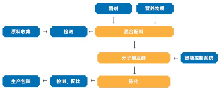 采用北思科技“单分子膜”静态好氧免翻堆高温发酵技术,经 70℃以上高温发酵后继续陈化腐熟,无病虫害,发酵腐熟完全后则有机 质有效转化为腐殖质,富含腐植酸,最后配方生产有机肥、菌肥。该工艺作业无异味,无二次污染, 投资量小(是槽式三分之二、罐式三分之一),智能省人工,生产成本低,可移动易扩充,生产的高 品质有机肥可满足各类作物的生长需求。